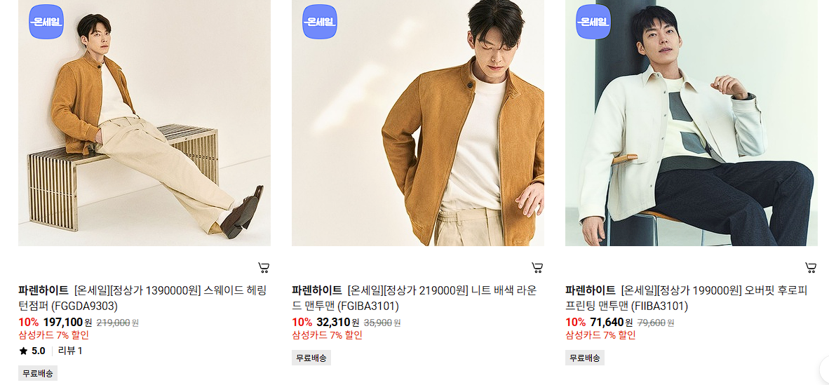 할인 품목 : 자켓, 셔츠, 니트, 팬츠 등