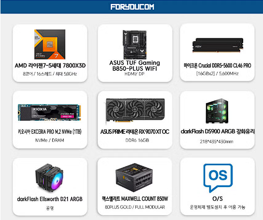 라이젠 R7 7800X3D RX 9070 XT ASUS 컴퓨터 조립PC 할인 정보 [링크]