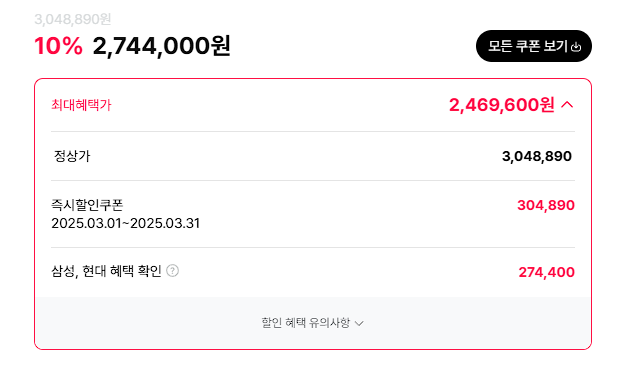 최대 할인가 2469600원