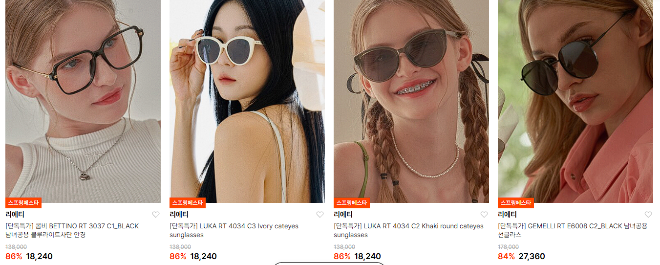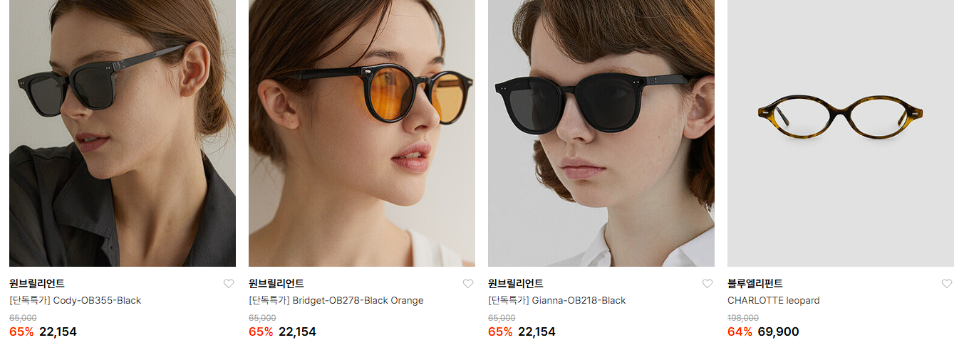할인 품목 : 선글라스, 안경테 등