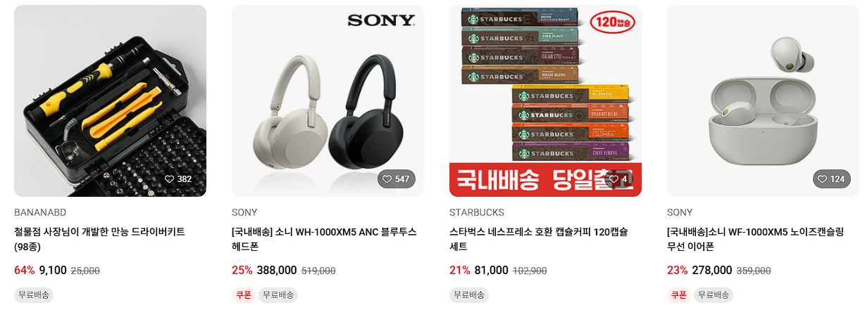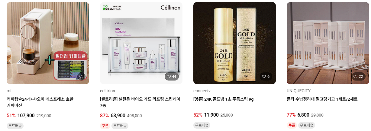 할인 품목 : 캡슐커피, 화장품, 가전 등