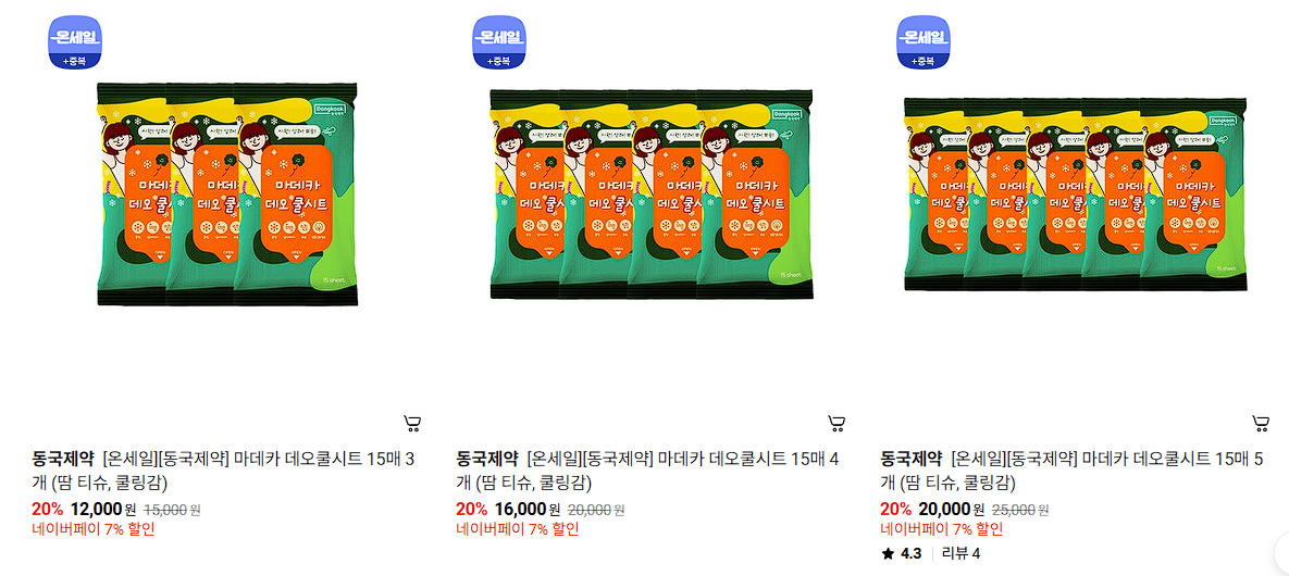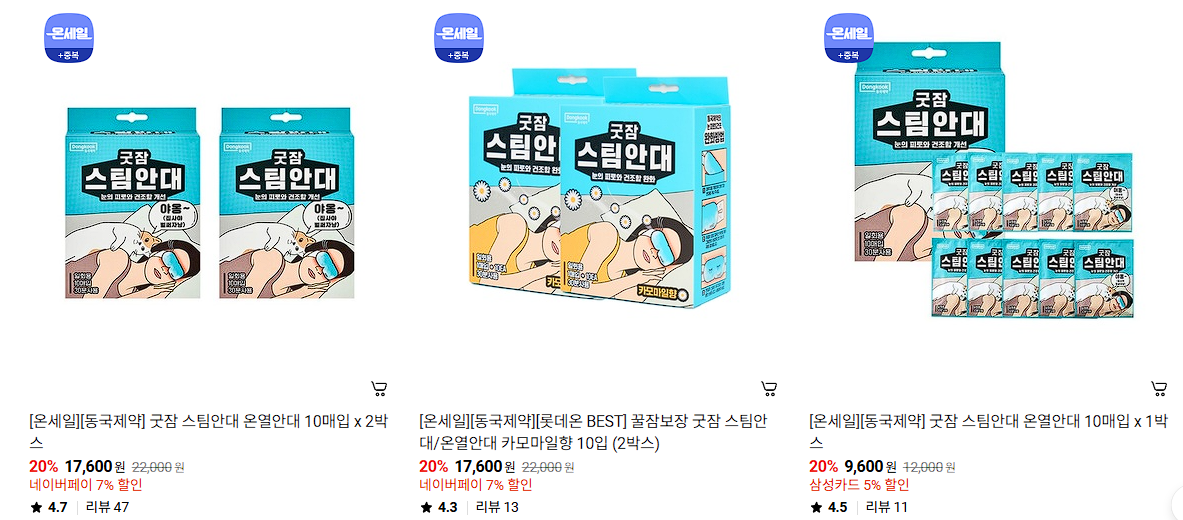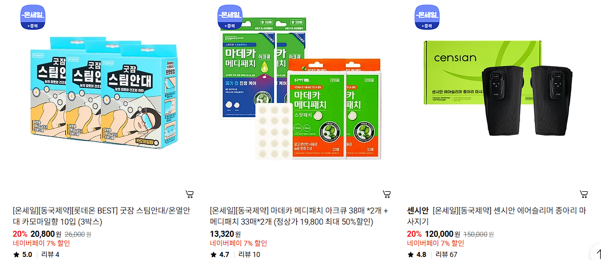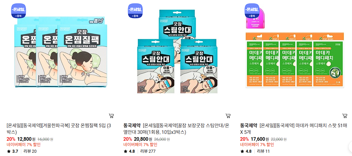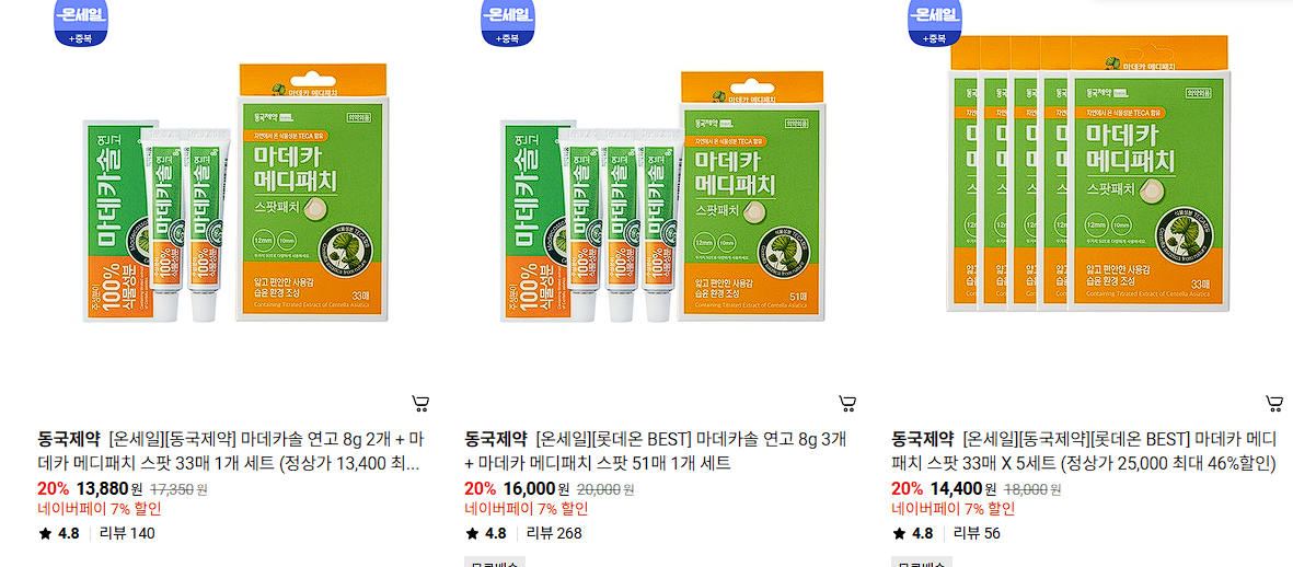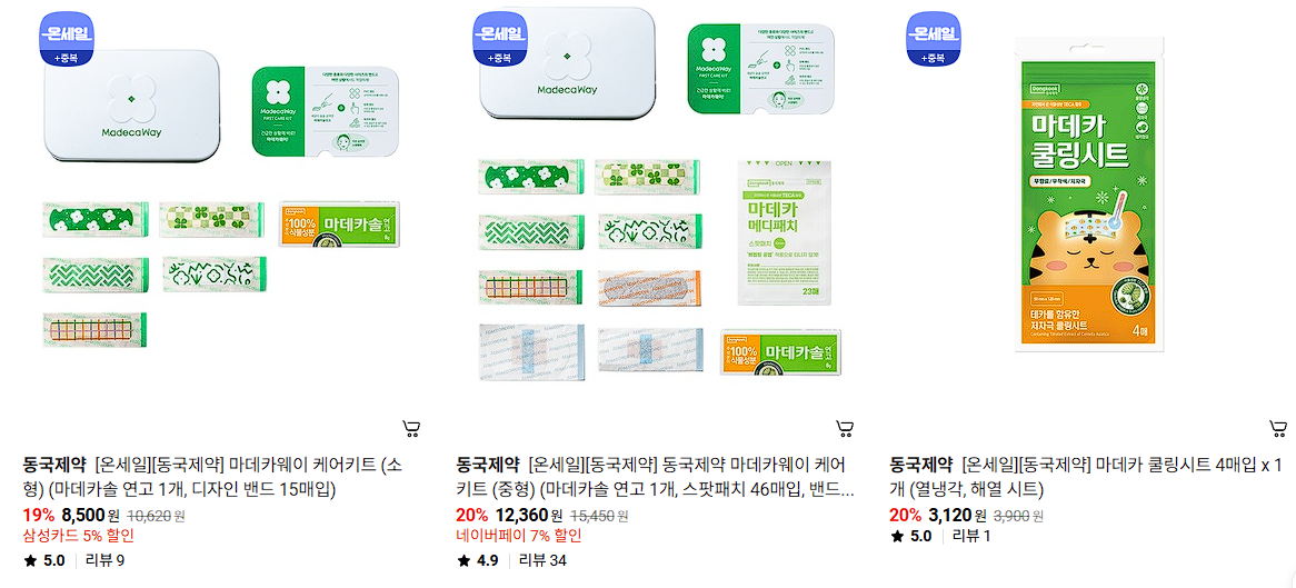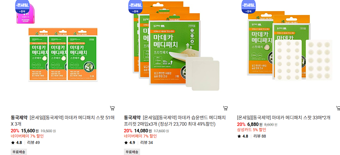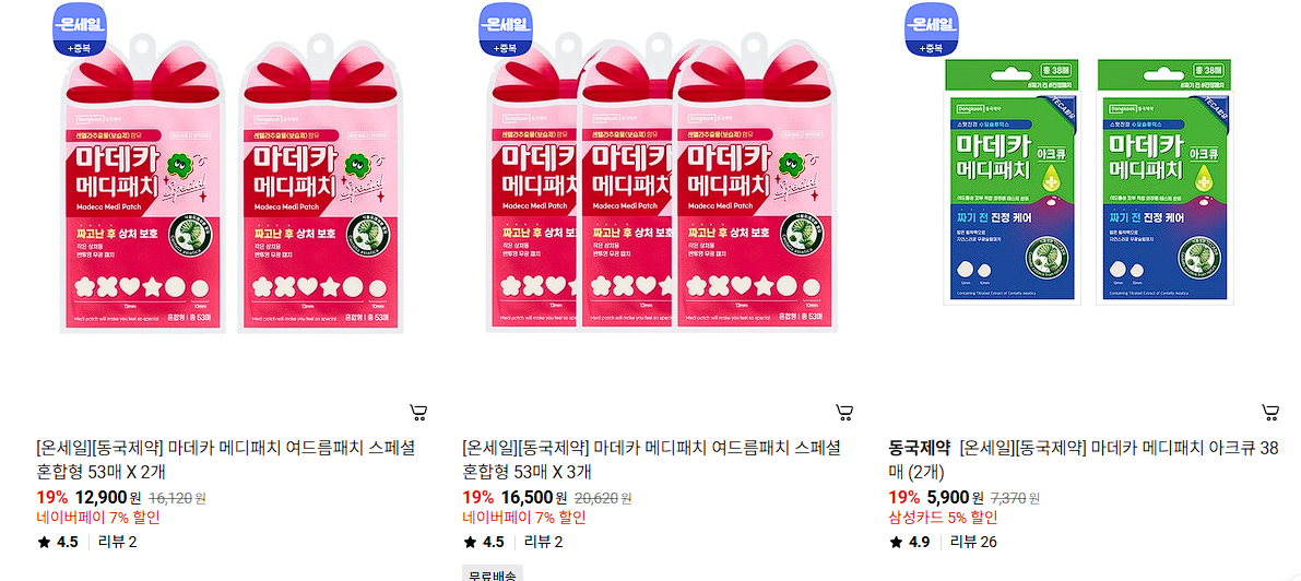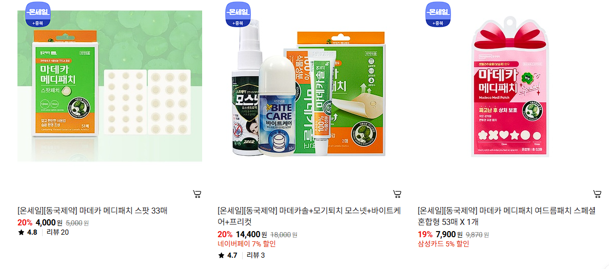 할인 품목 : 메디패치, 마데카솔 연고, 스팀안대 등