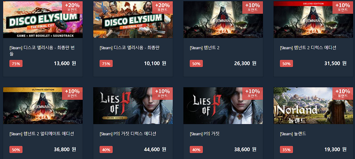 할인 게임 : P의 거짓, 마블 미드나잇 선즈, 스파이더맨 등