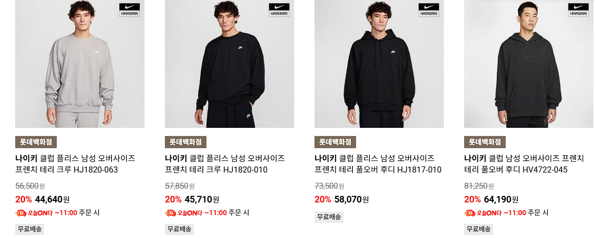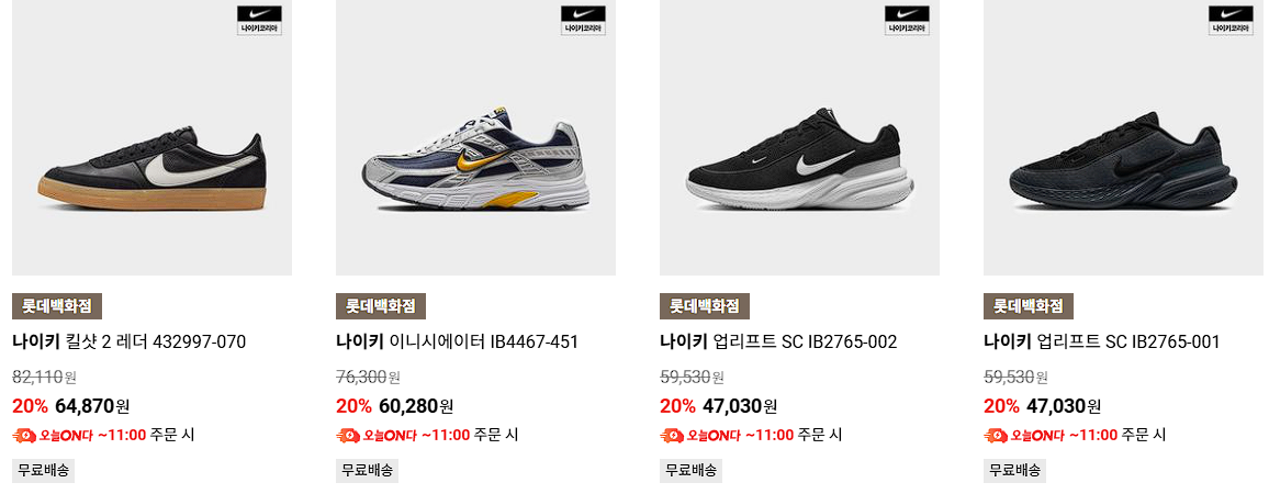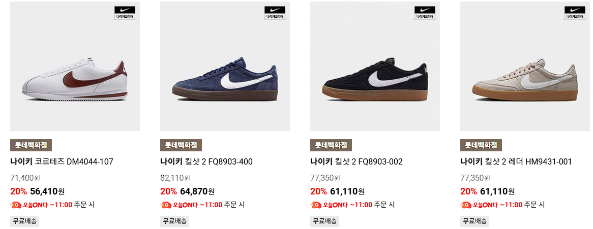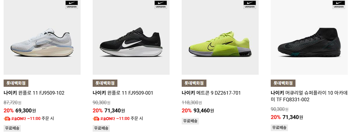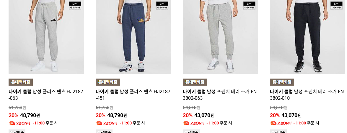 나이키 다양한 제품을 할인 판매하네요.