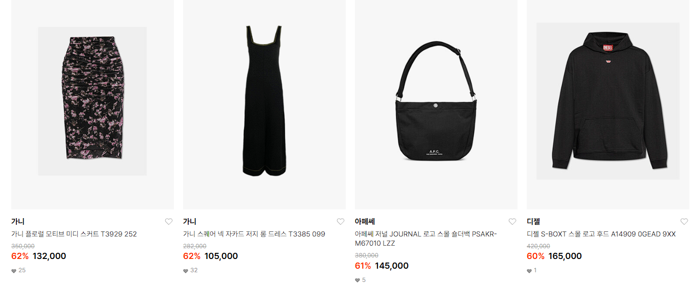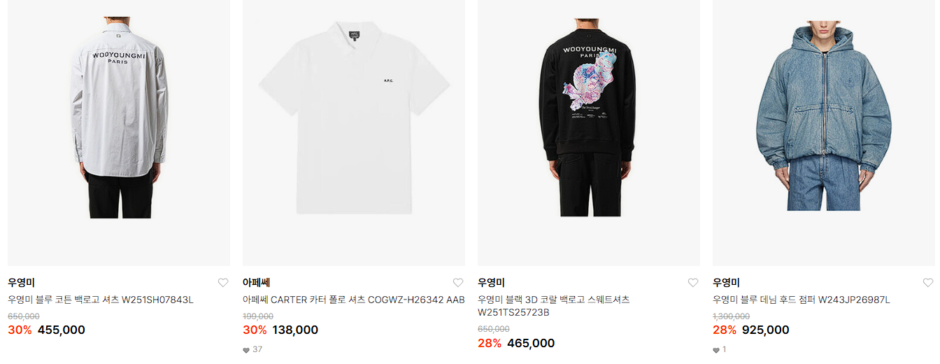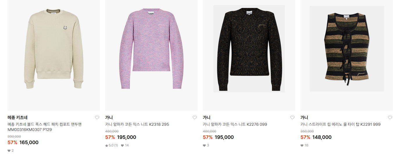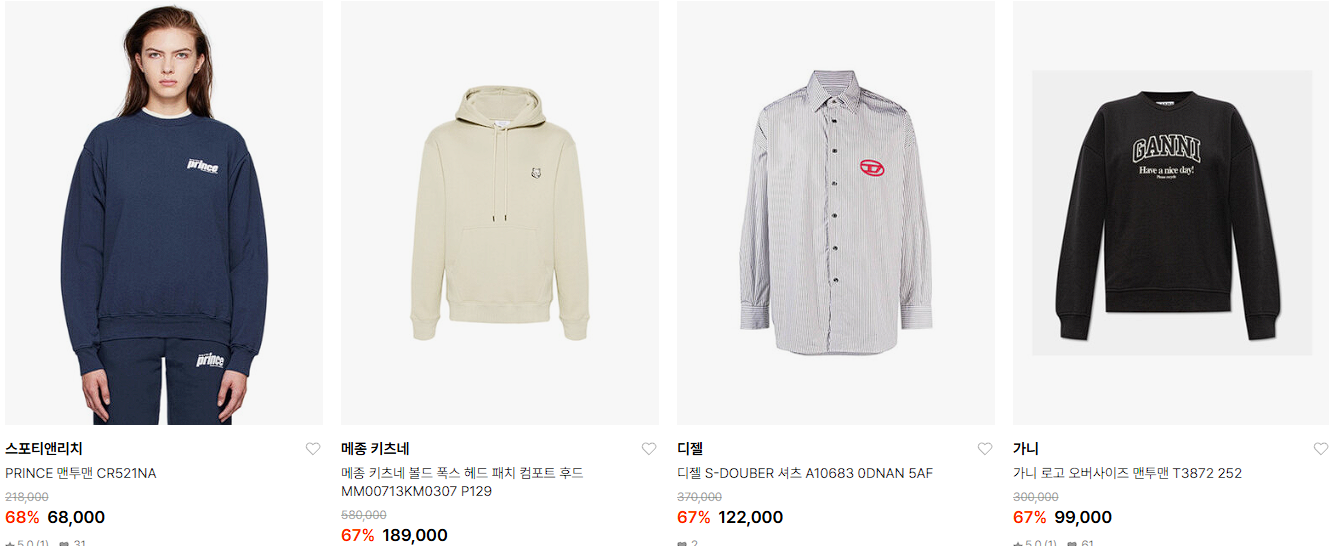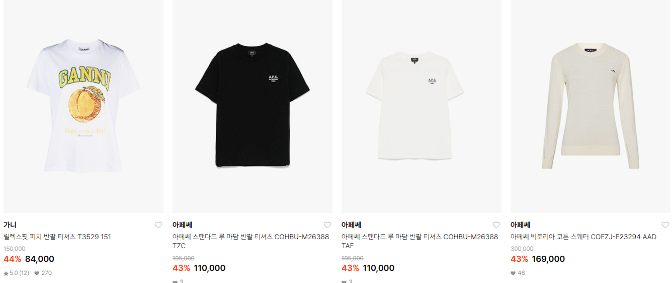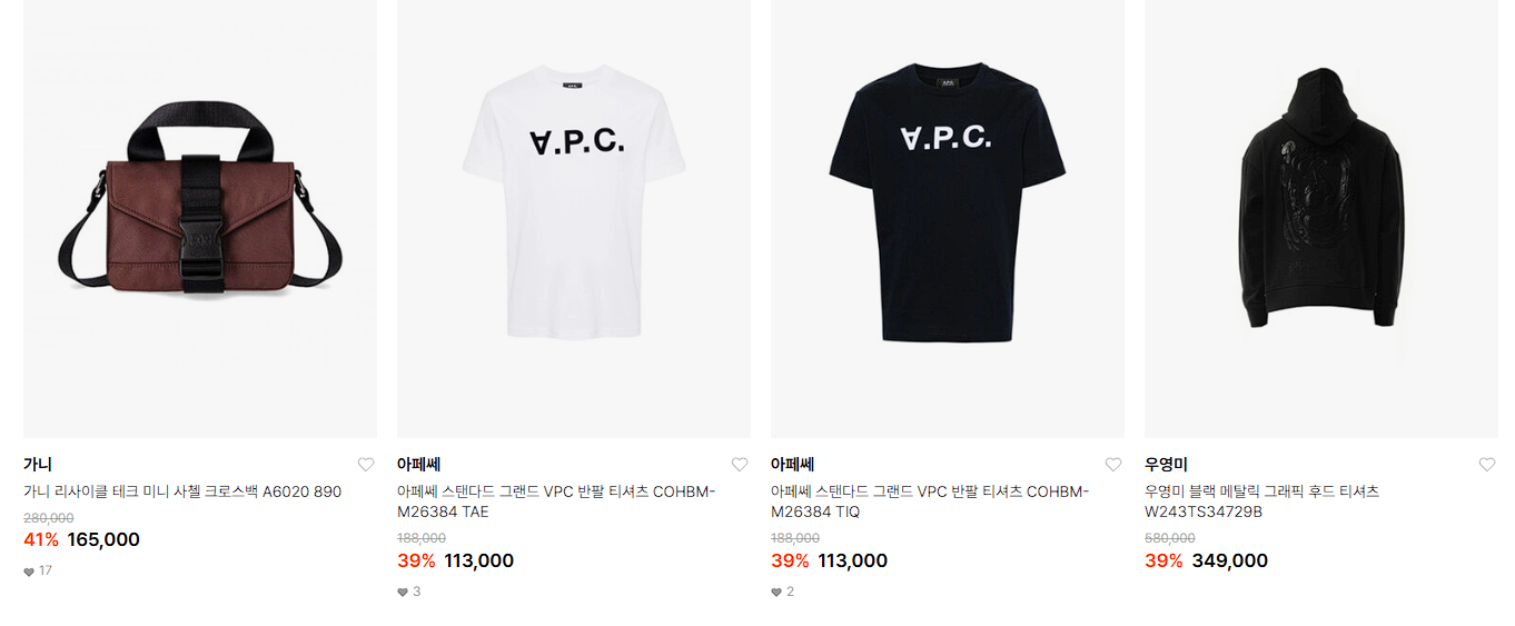할인 품목 : 티셔츠, 니트, 가방 등