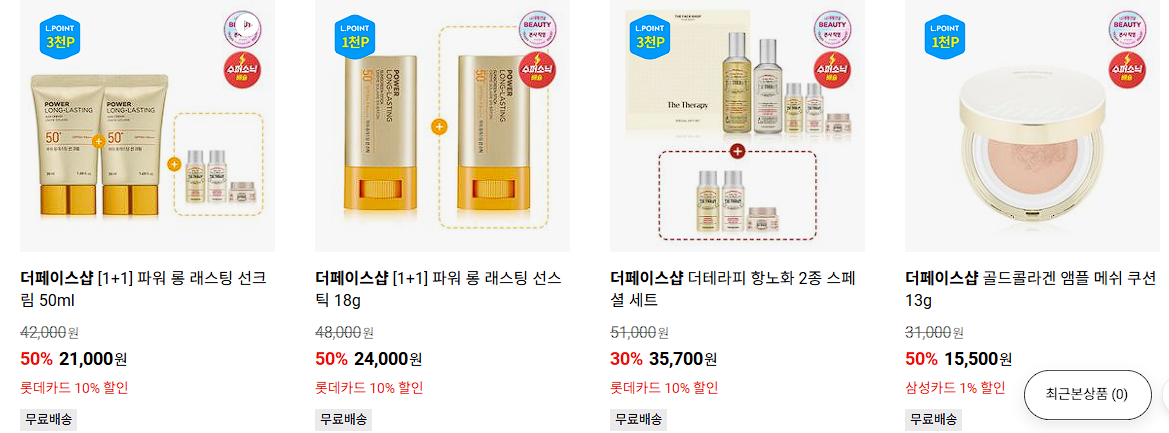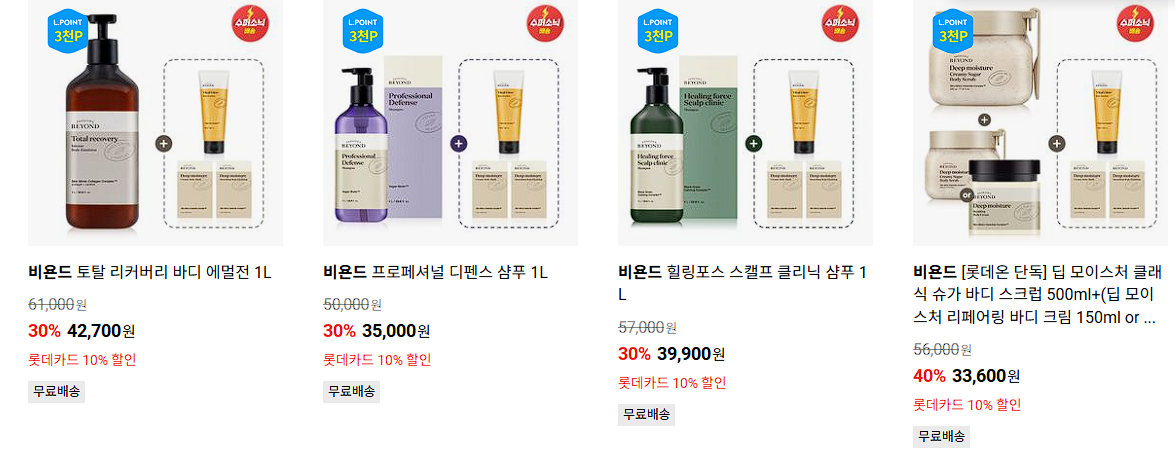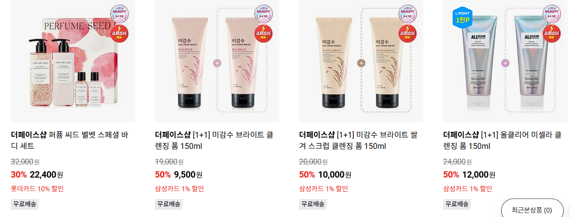 할인 품목 : 선크림, 클렌징폼, 샴푸, 로션 등