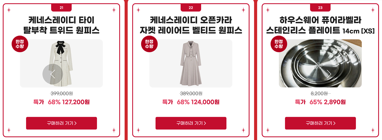 할인 품목 : 의류, 신발, 화장품 등