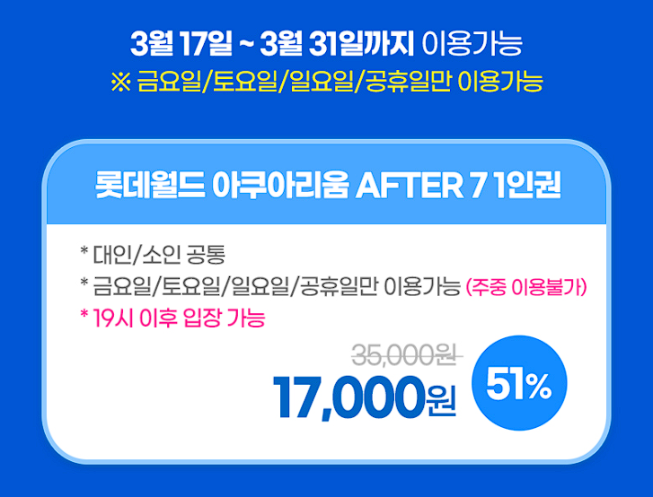 잠실 롯데월드 아쿠아리움 AFTER 7 입장권 할인 정보 [링크]