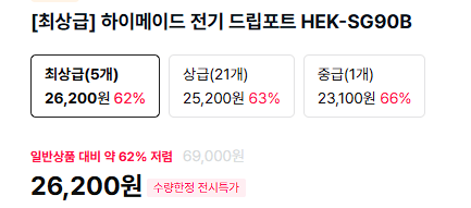 하이메이드 전기 드립포트 HEK-SG90B 전시상품 할인 정보 [링크]
