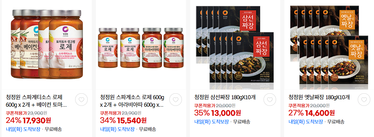 할인 품목 : 만두, 파스타소스, 짜장 등