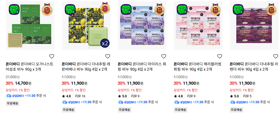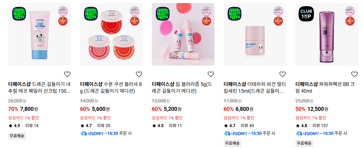 할인 품목 : 선크림, BB크림, 비누 등