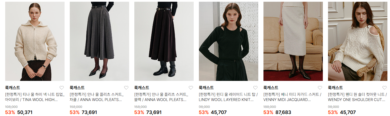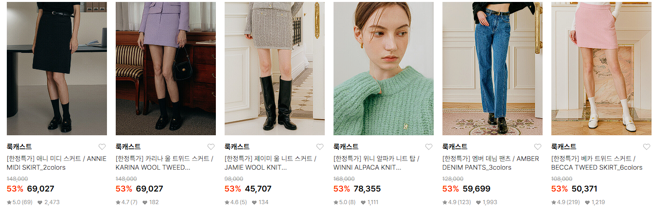 룩캐스트 다양한 제품을 할인 판매하네요.