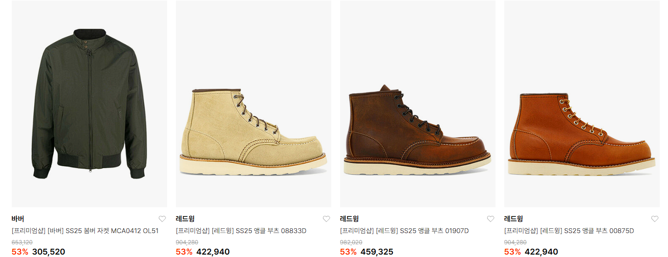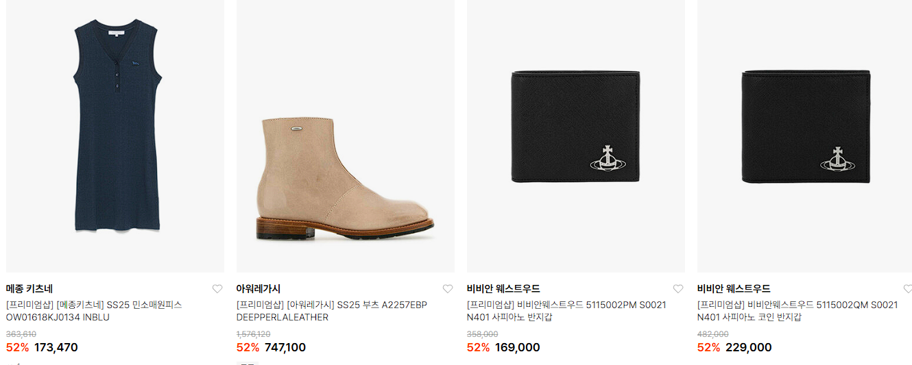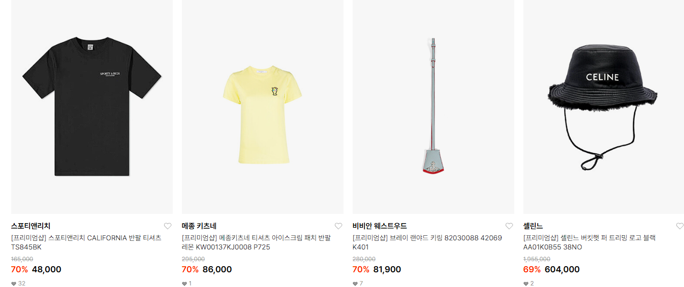 할인 품목 : 의류, 시계, 가방 등