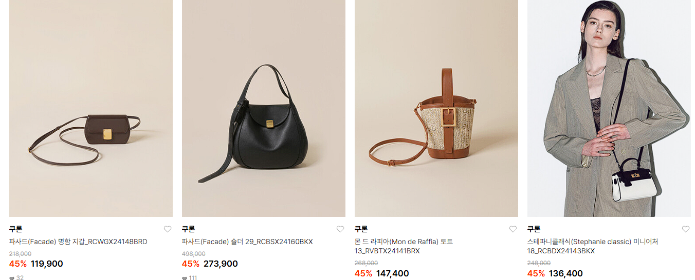 할인 품목 : 크로스백, 지갑 등