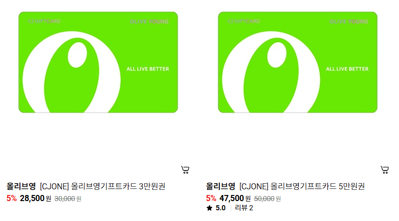 올리브영 기프트카드 5% 할인 판매하네요.