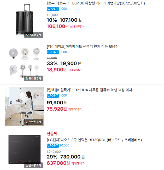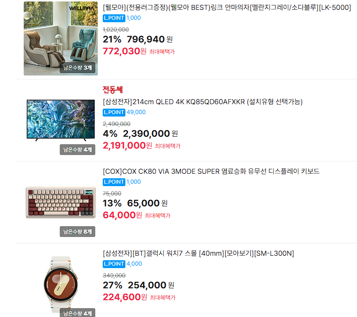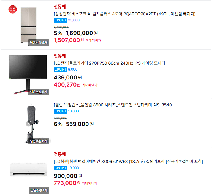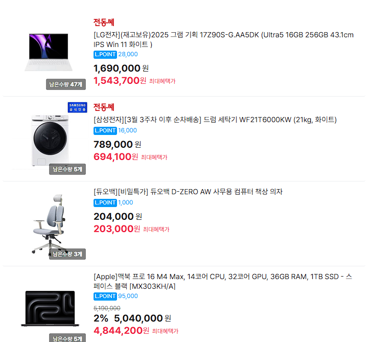 할인 품목 : 노트북, 세탁기, 키보드 등