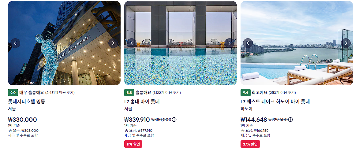 할인 호텔 : 롯데호텔서울, 롯데호텔월드 등