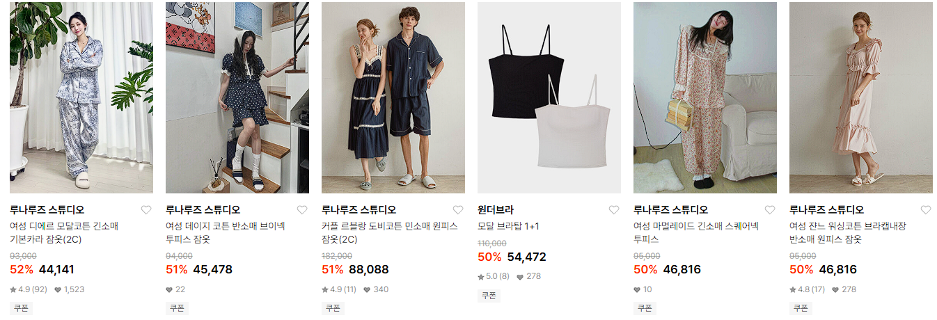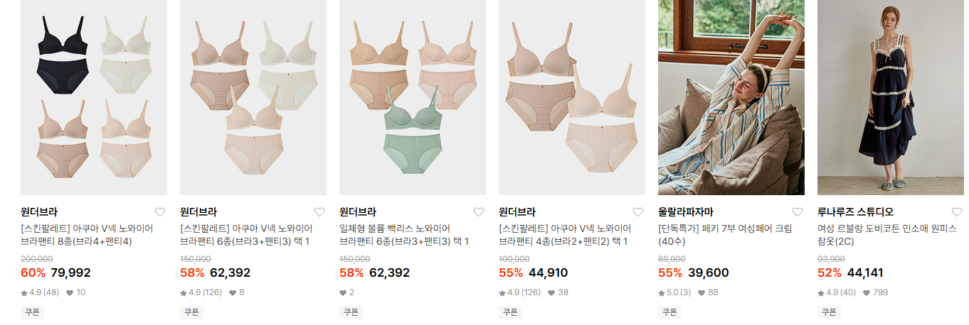 W컨셉 라운지웨어&언더웨어 다양한 제품을 할인 판매하네요.