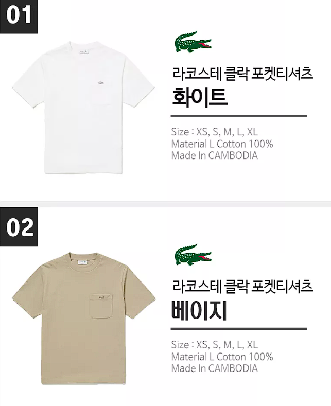 라코스테 크루넥 아웃라인 포켓 반팔티셔츠 할인 정보 포스팅입니다.