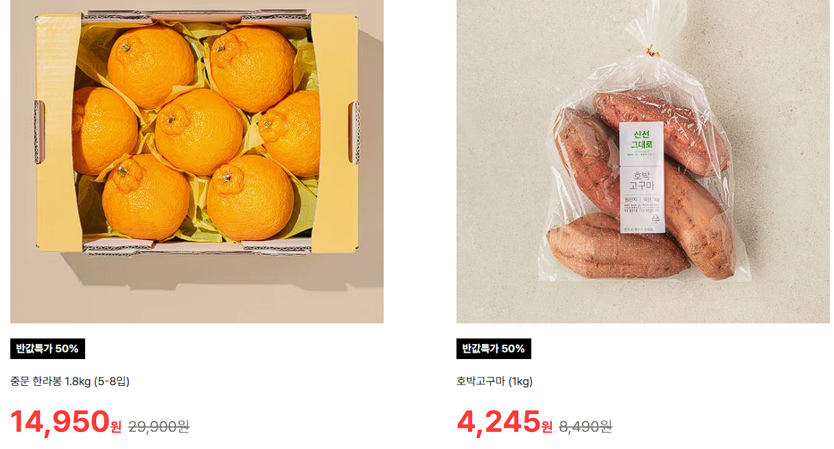 할인 품목 : 한라봉, 호박고구마, 치아바타 등