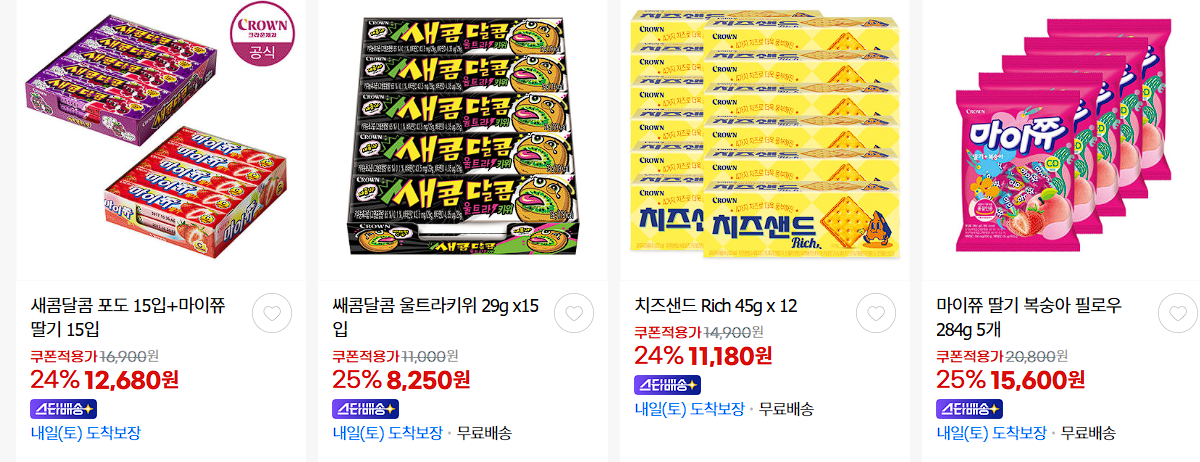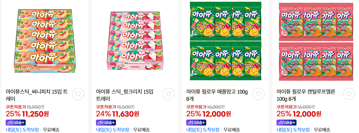 할인 품목 : 마이쮸, 빅파이, 꽃게랑 등