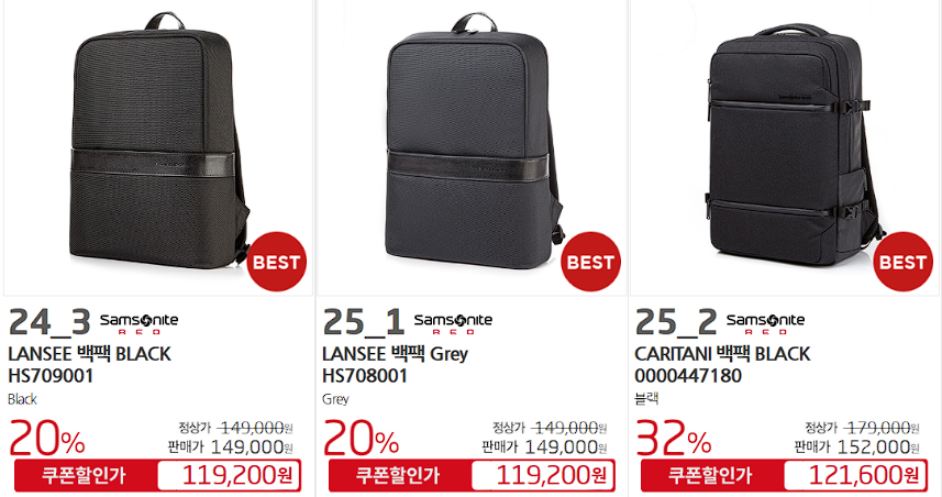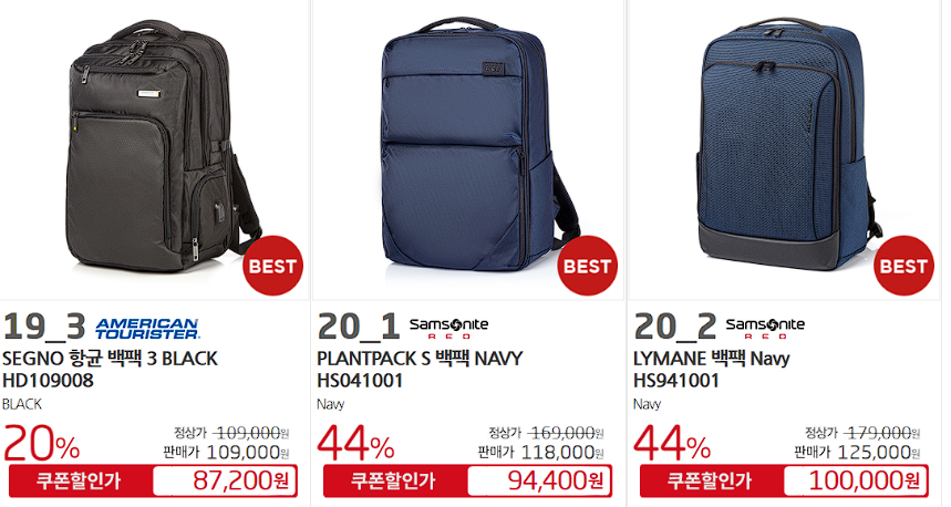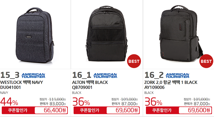 할인 품목 : 백팩, 캐리어 등