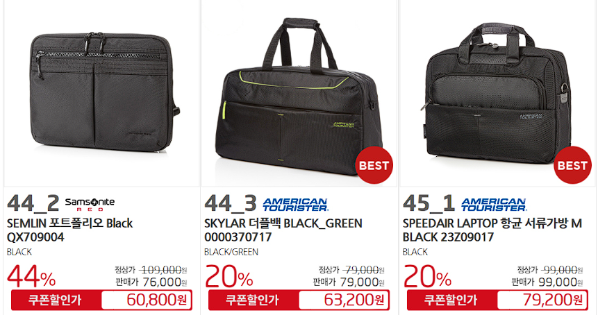 쌤소나이트/아메리칸투어리스터 다양한 제품을 할인 판매하네요.
