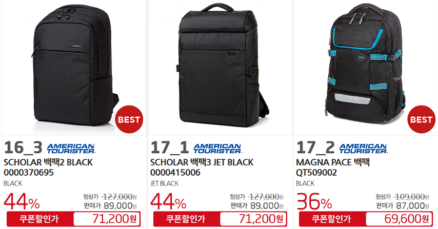 쌤소나이트/아메리칸투어리스터 다양한 제품을 할인 판매하네요.