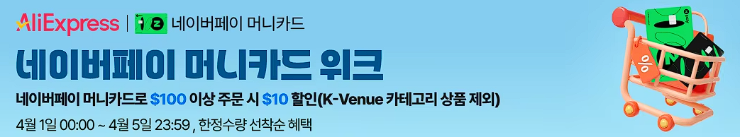 $100 이상 구매 시, $10 즉시 할인: 네이버페이 머니카드