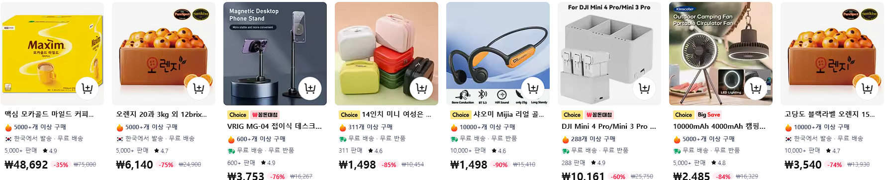 알리익스프레스 다양한 제품을 할인 판매하네요.