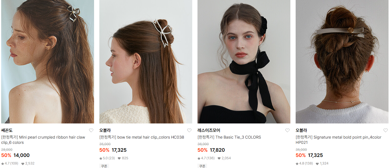 할인 품목 : 귀걸이, 시계, 헤어밴드 등