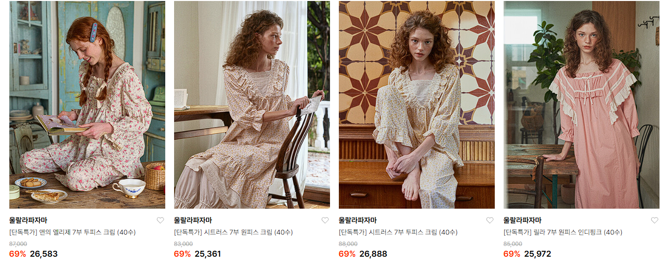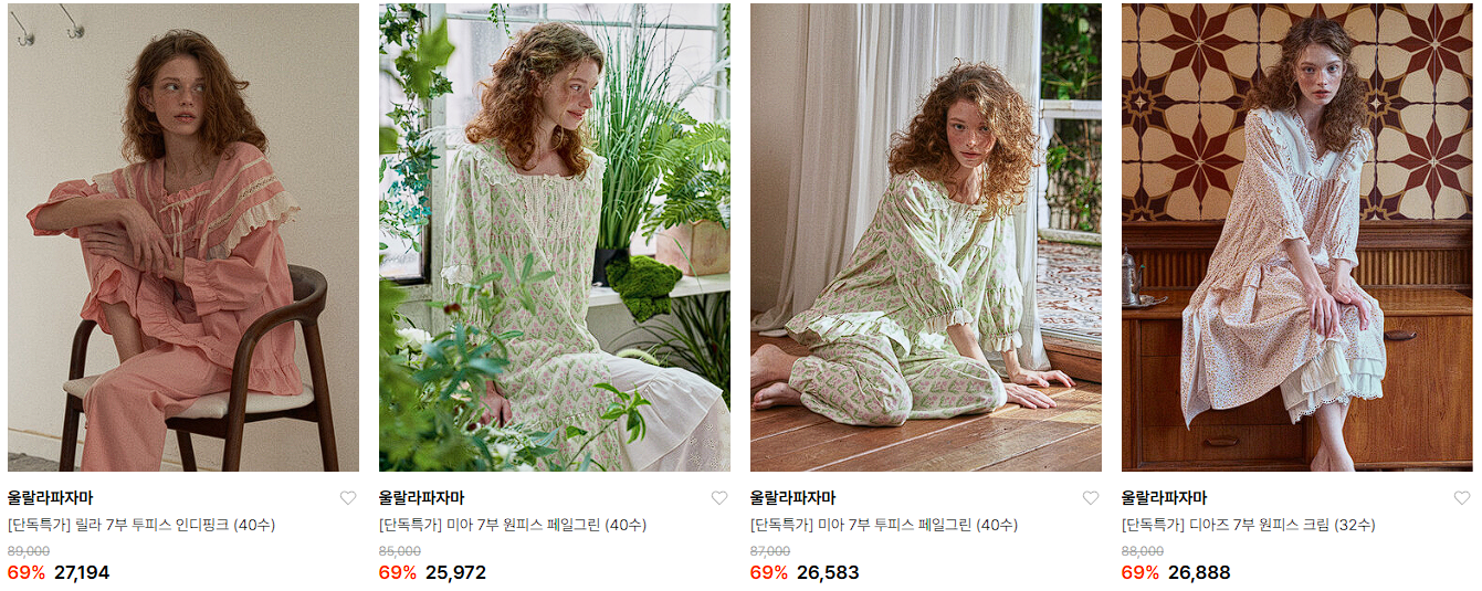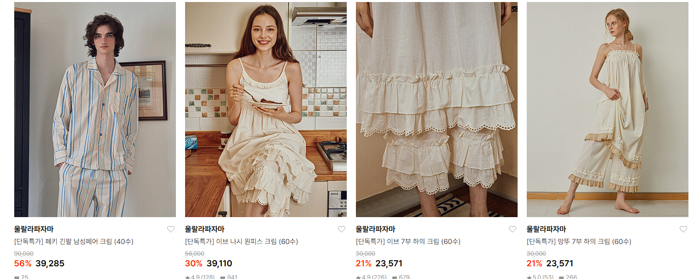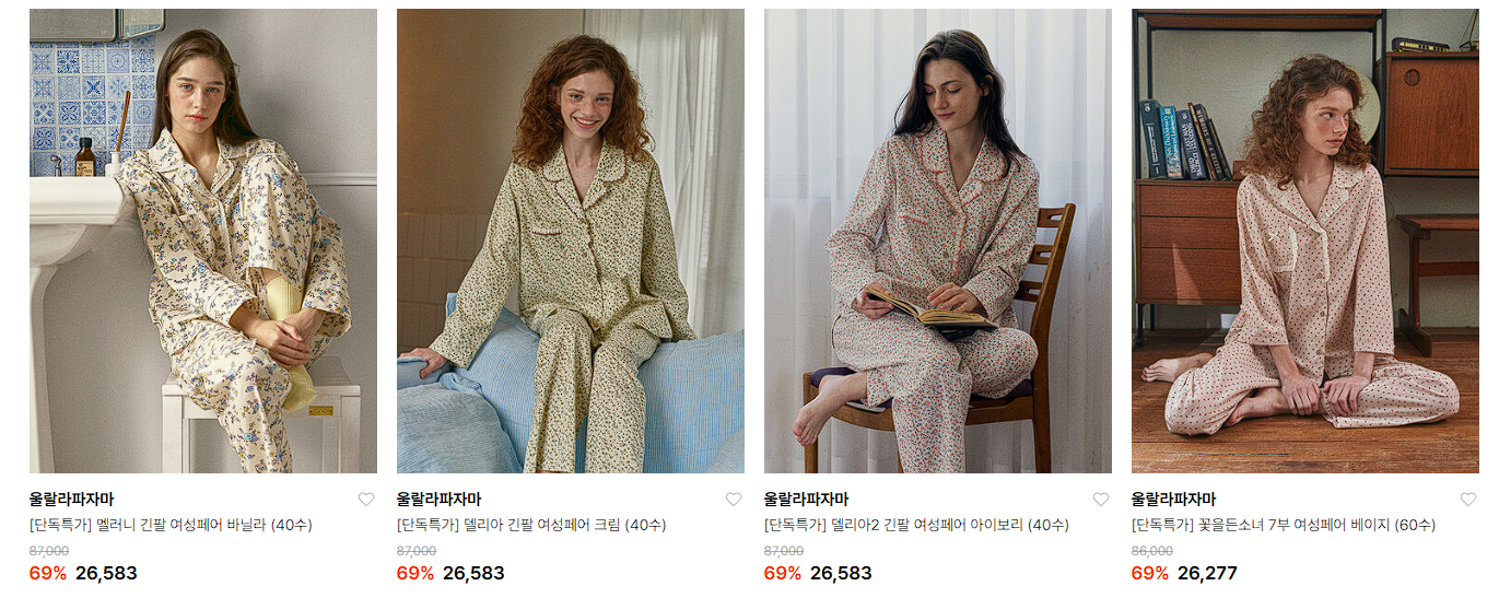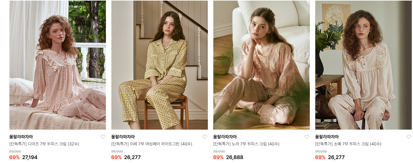 울랄라파자마 다양한 제품을 할인 판매하네요.