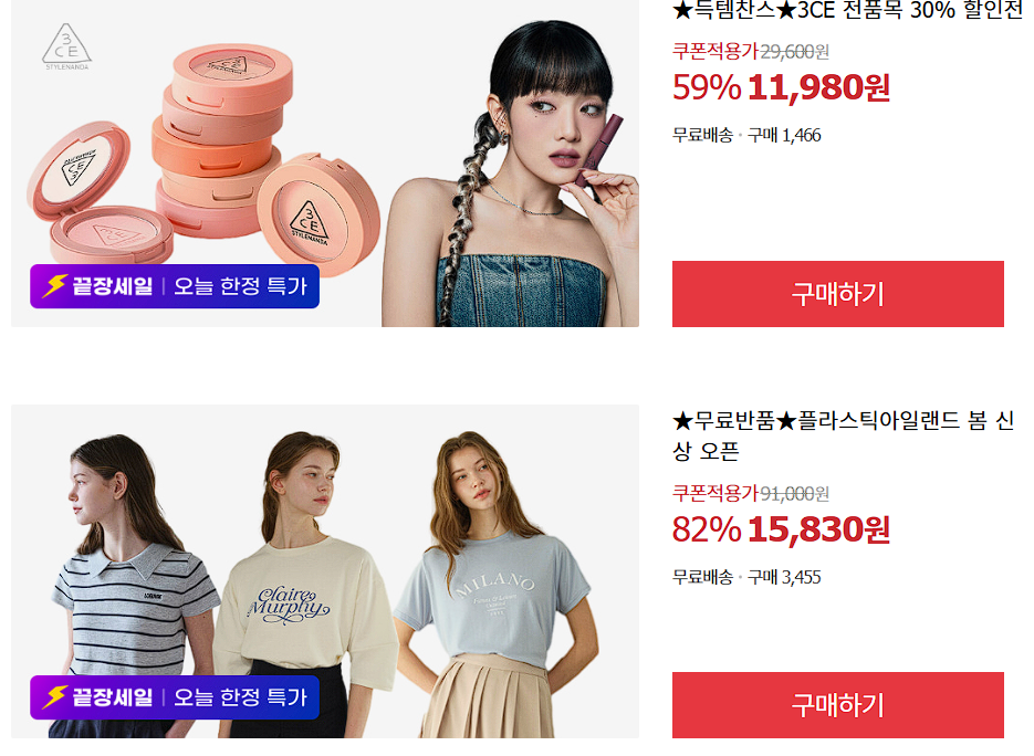할인 품목 : 의류, 잡화, 화장품 등