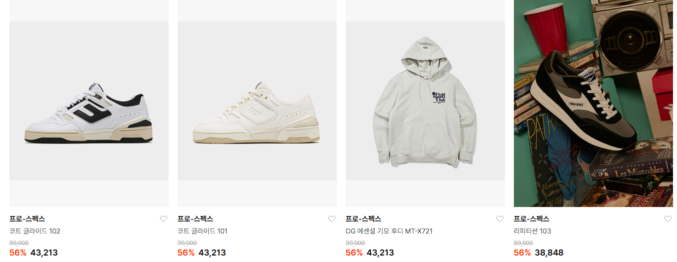 프로스펙스 다양한 제품을 할인 판매하네요.