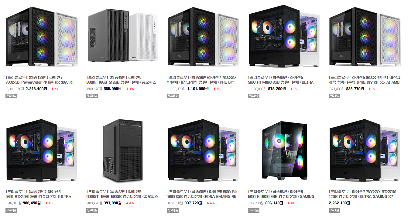 프리플로우 다양한 조립PC를 할인 판매하네요.