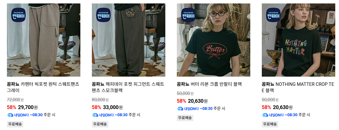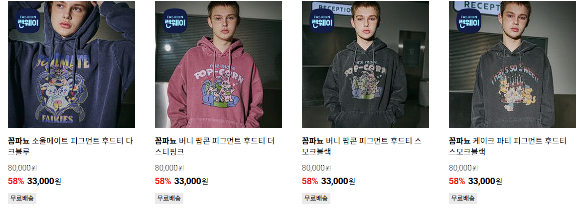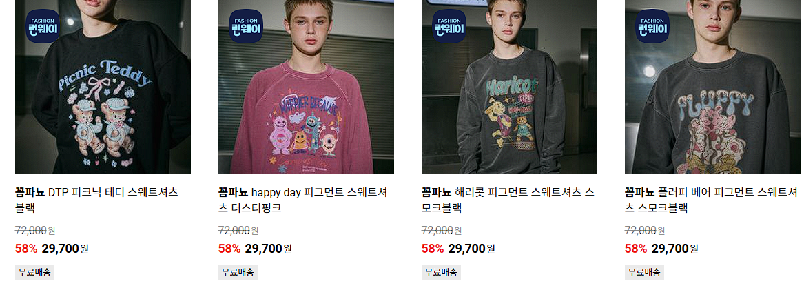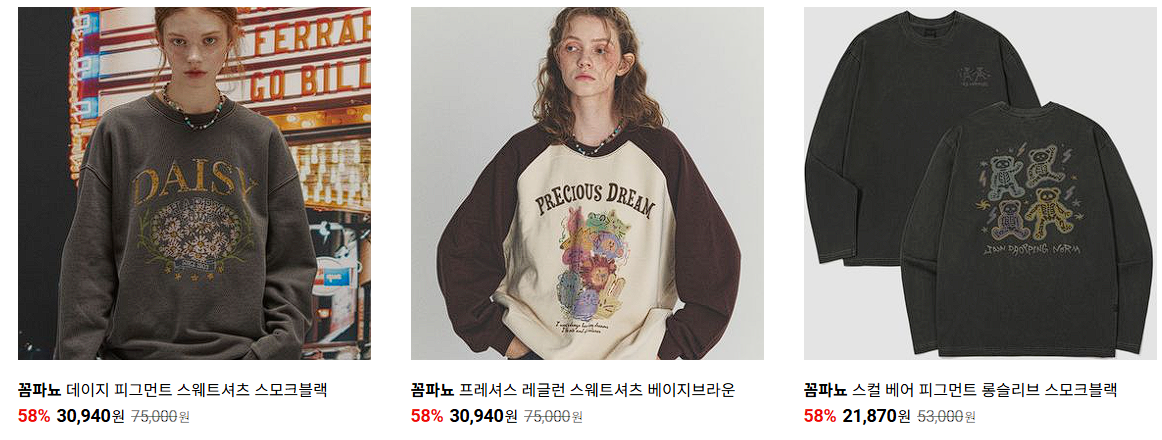 할인 품목 : 맨투맨, 후드티, 팬츠 등