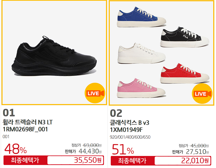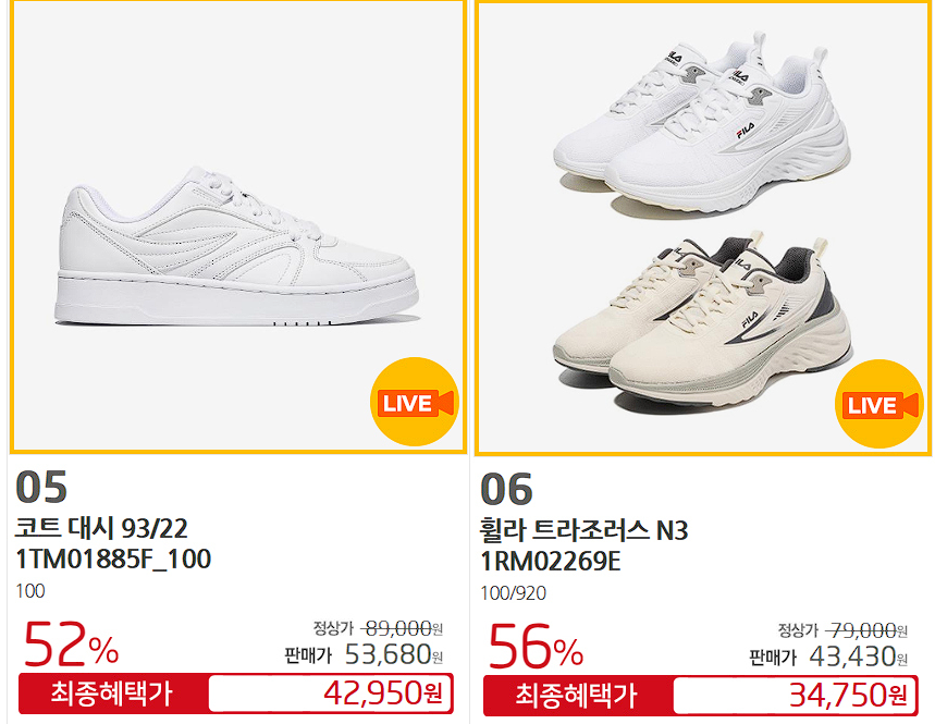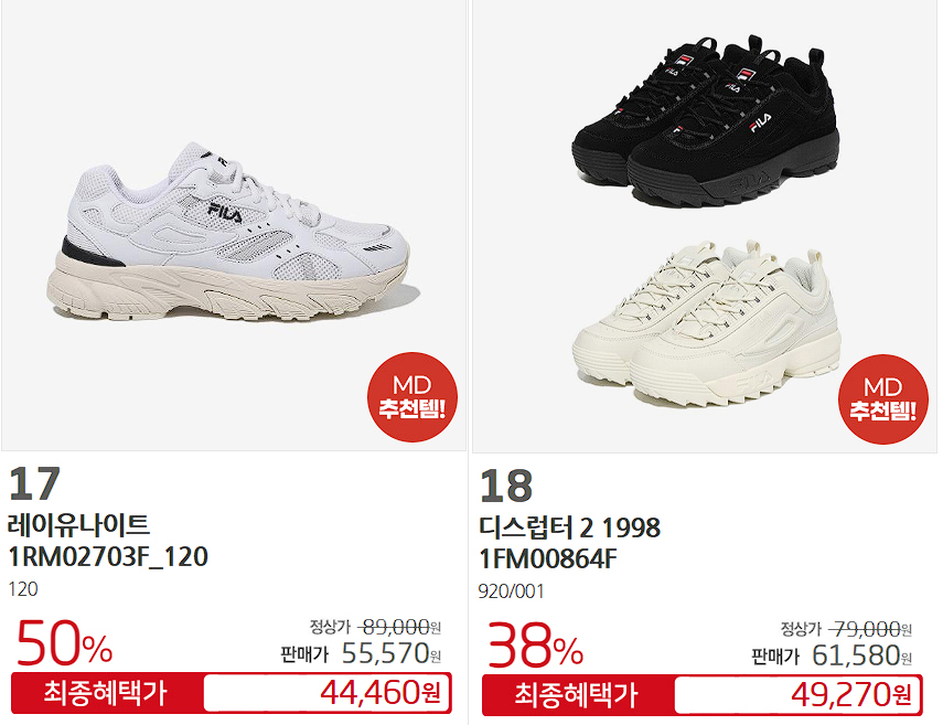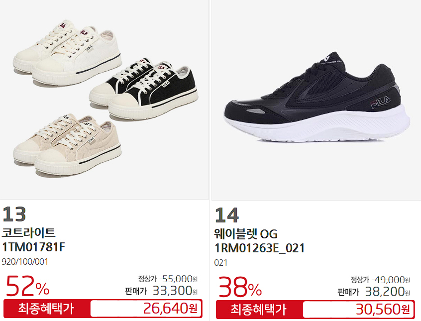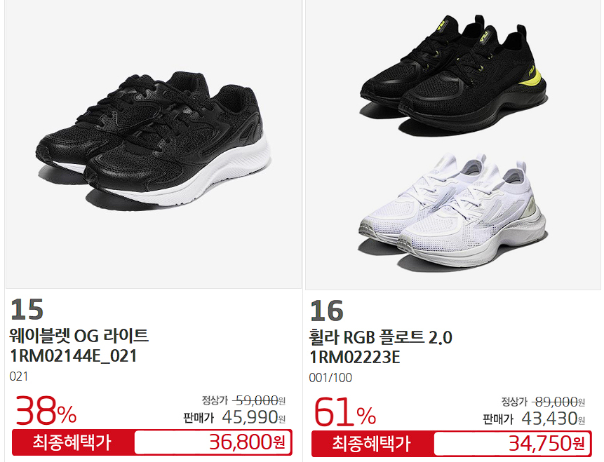 휠라 다양한 제품을 할인 판매하네요.