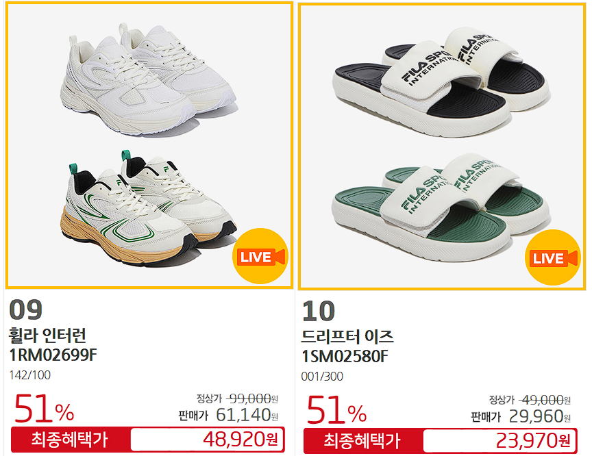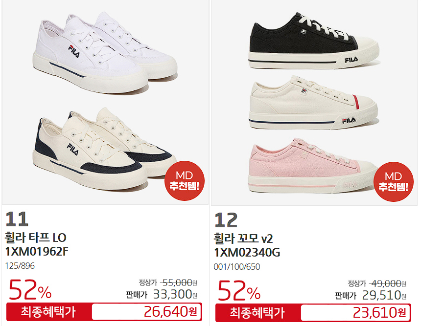 휠라 다양한 제품을 할인 판매하네요.