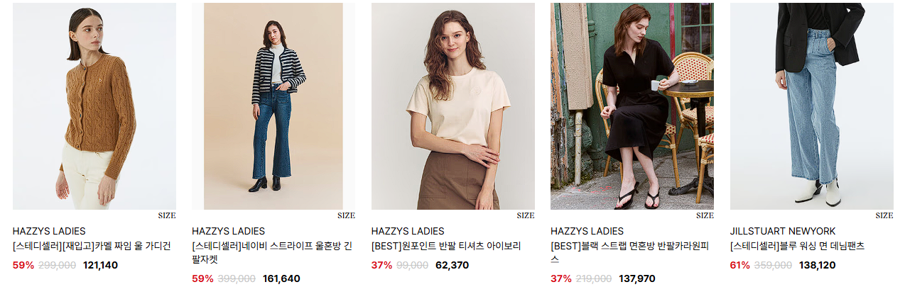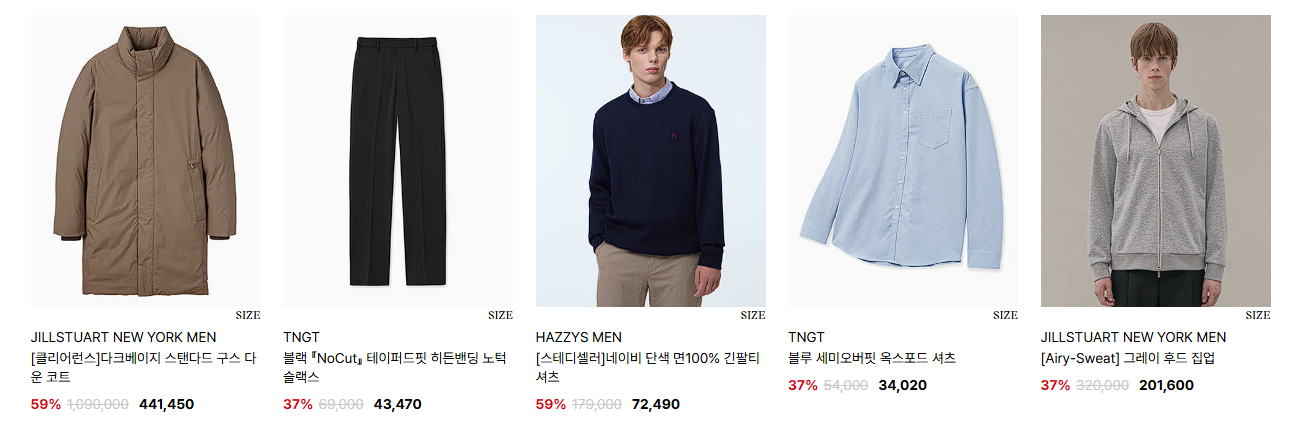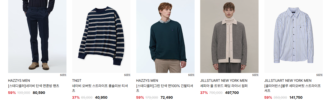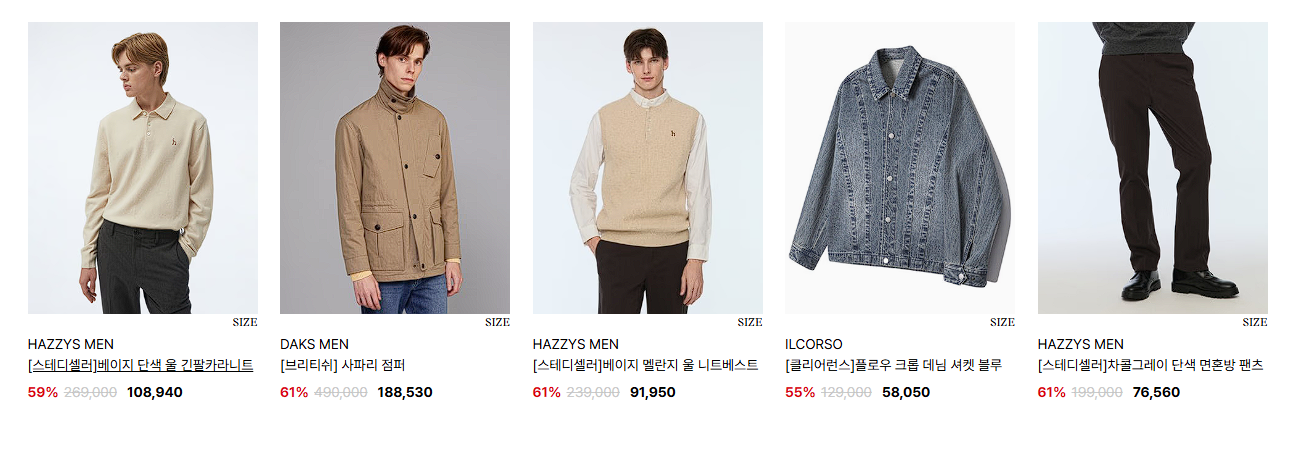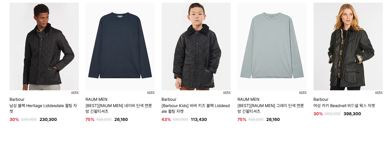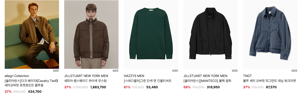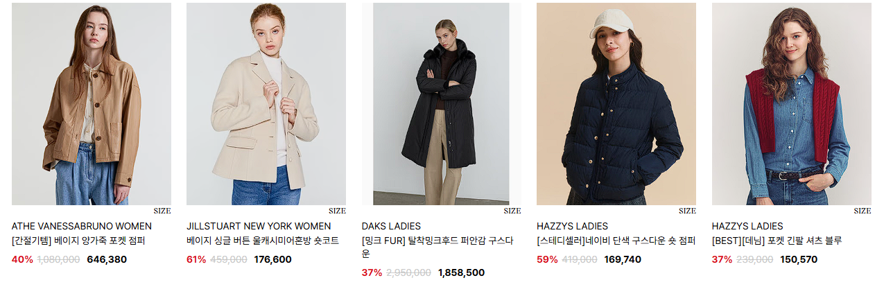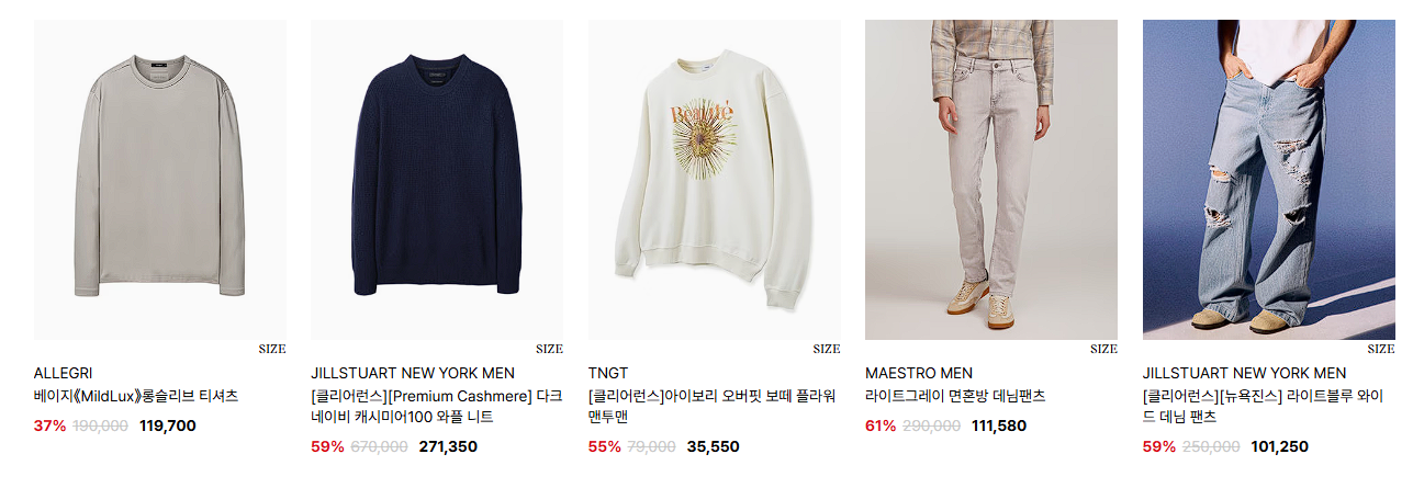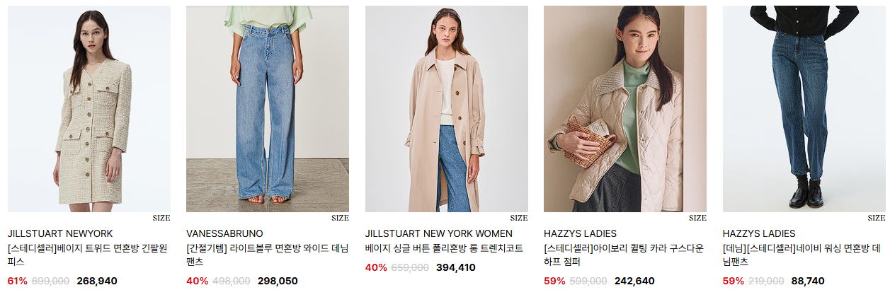 할인 품목 : 의류, 가방, 신발 등
