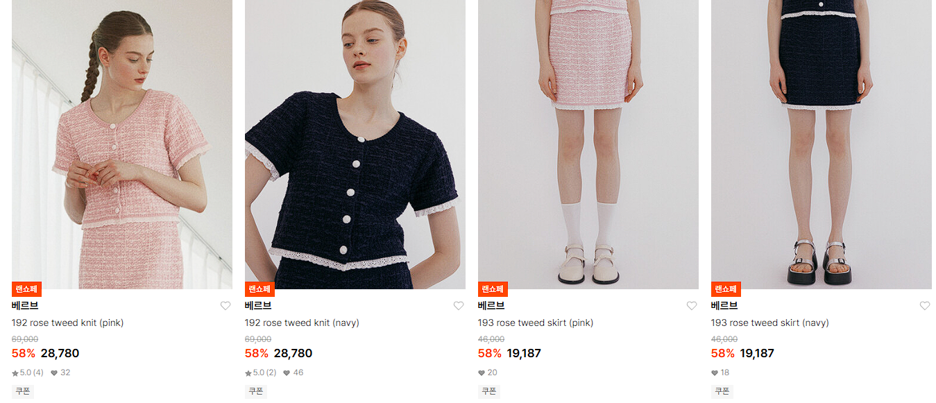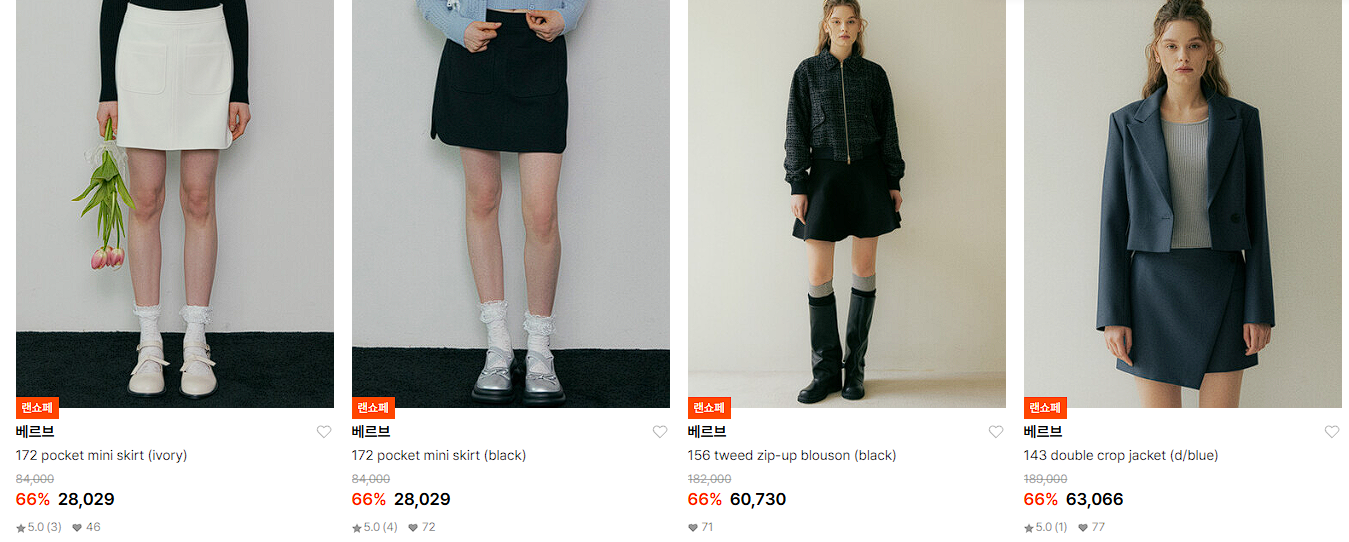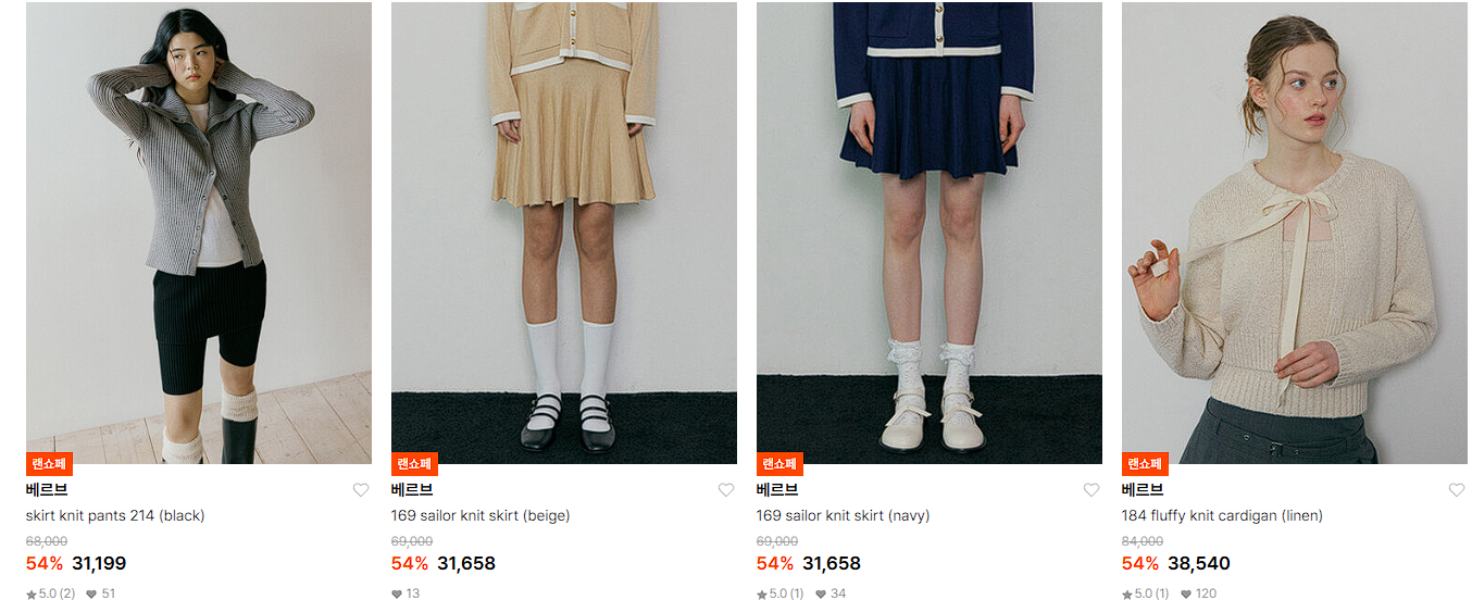 할인 품목 : 자켓, 스커트, 니트 등