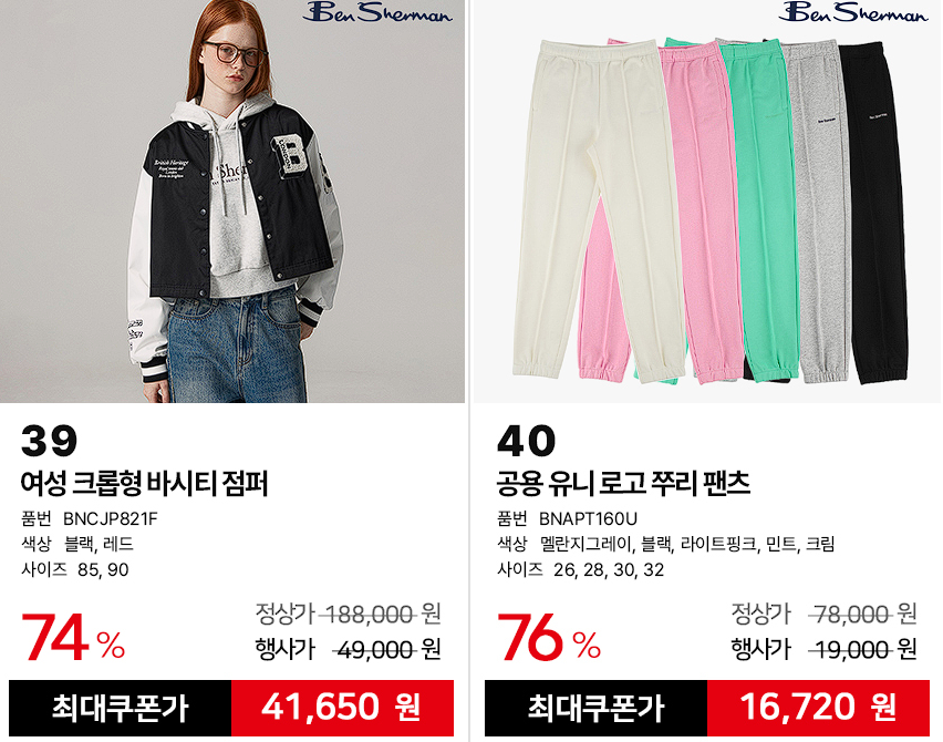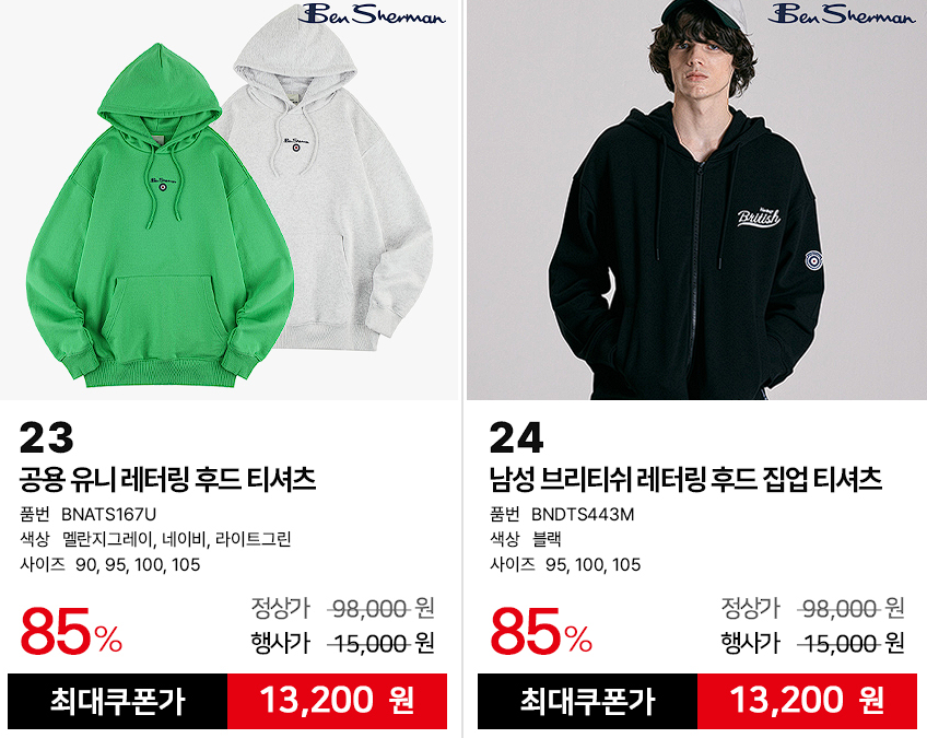 할인 품목 : 맨투맨, 후드티, 팬츠 등