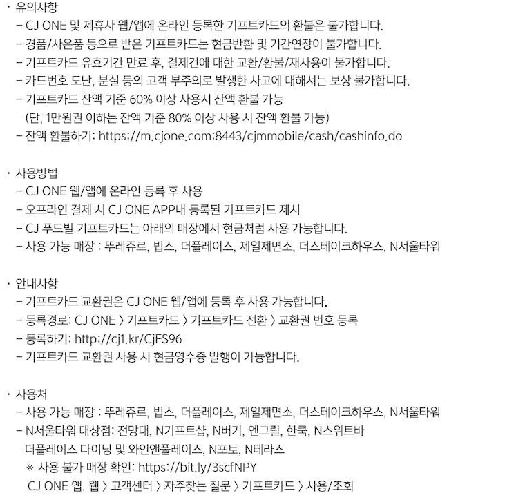 CJ푸드빌 기프트카드 3만원권 15% 할인 정보 [링크]