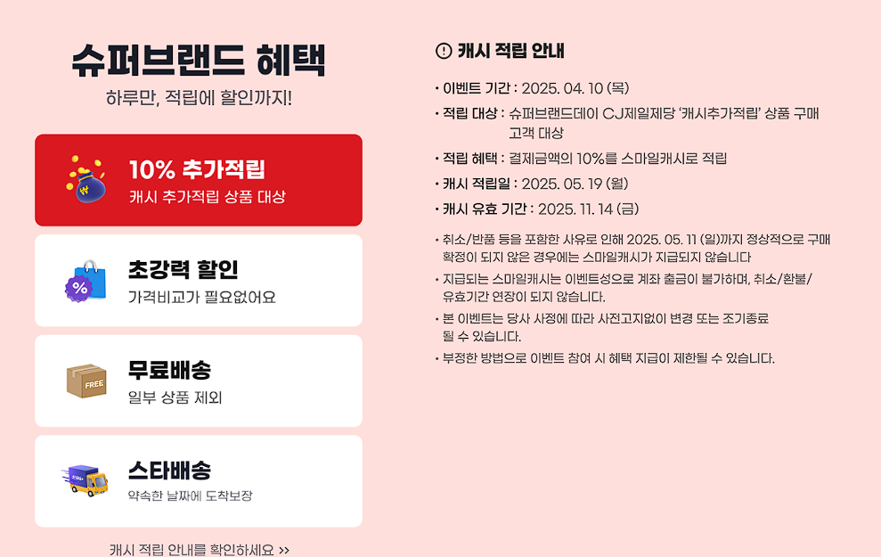 CJ제일제당 슈퍼 브랜드 데이 이벤트 정보 포스팅입니다.