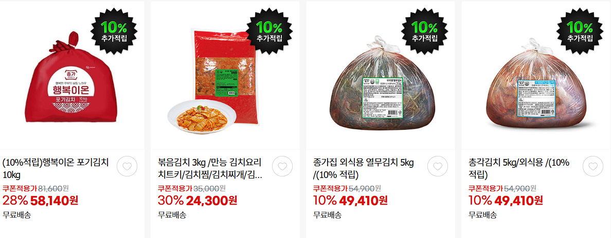 할인 품목 : 김치, 볶음밥, 짜장 등
