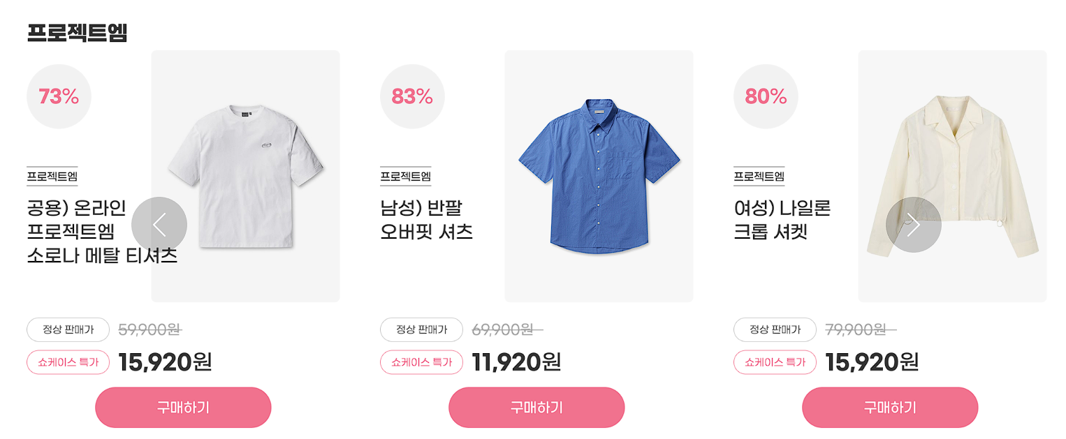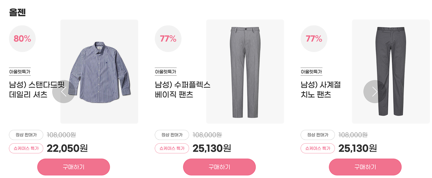 할인 품목 : 티셔츠, 팬츠, 셔츠, 자켓 등