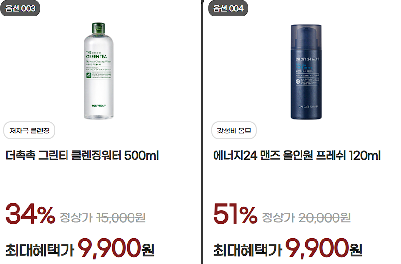 할인 품목 : 올인원, 선크림, 클렌징폼 등