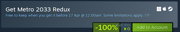 스팀 메트로리덕스 2033 무료 이벤트를 진행하네요.