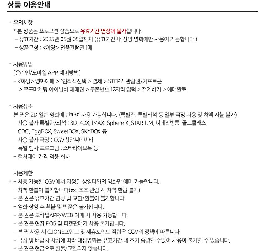 CGV 영화 야당 전용 관람권 할인