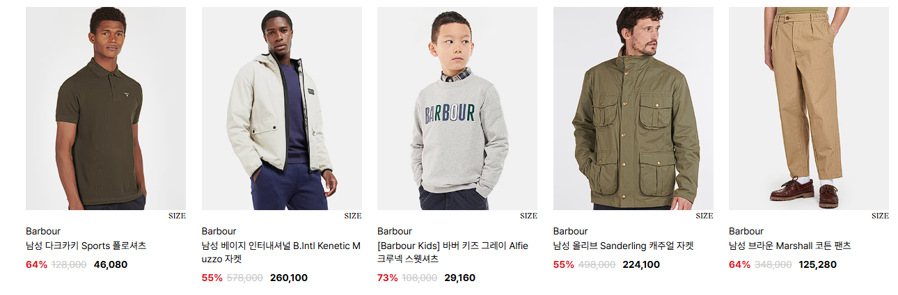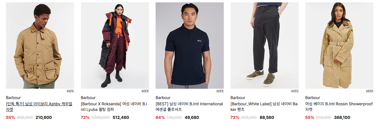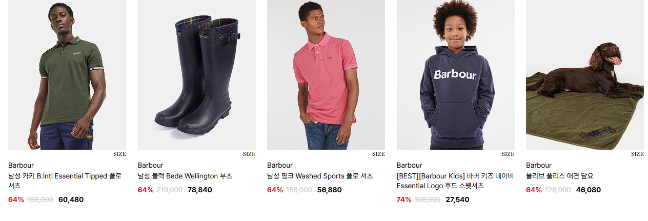 바버 다양한 제품을 할인 판매하네요.