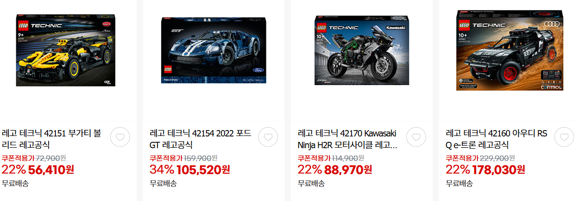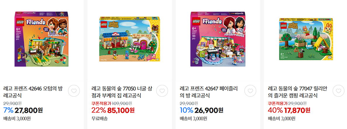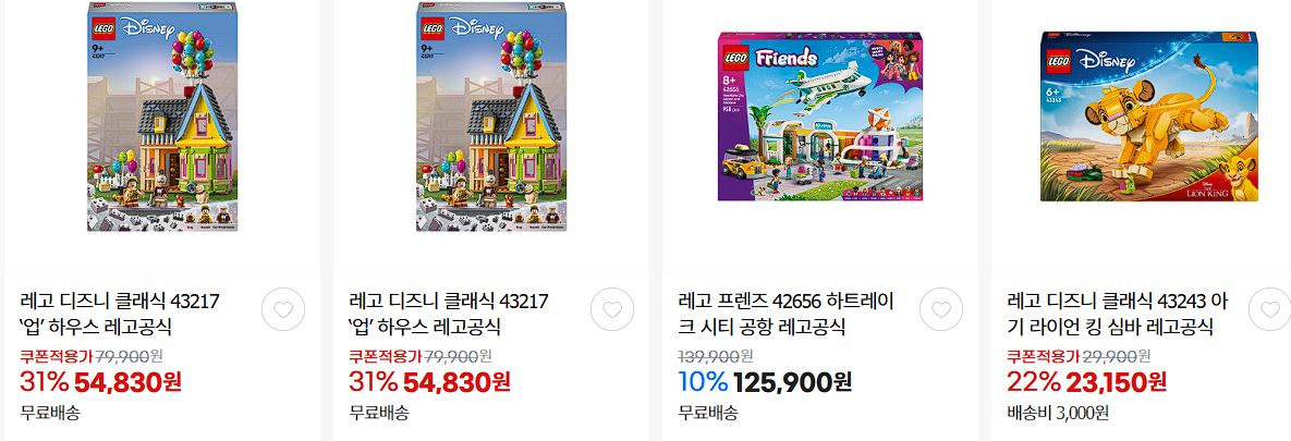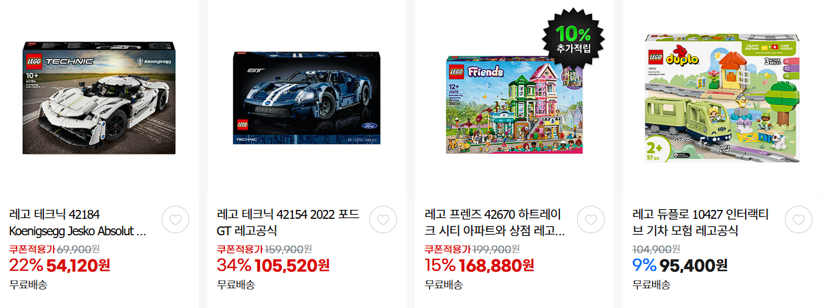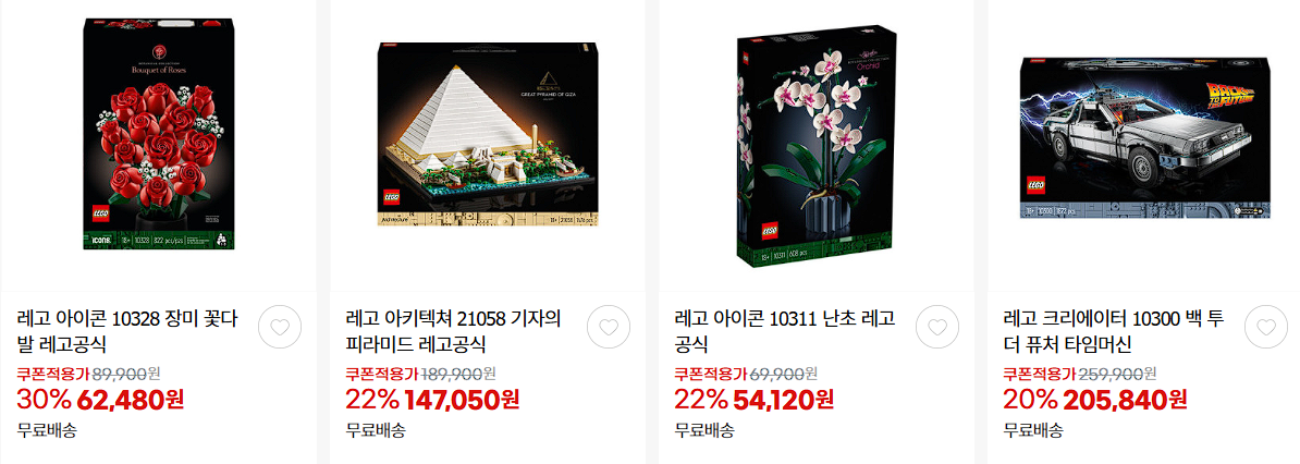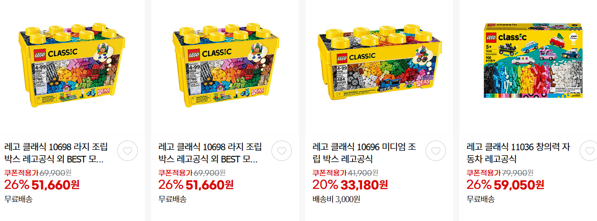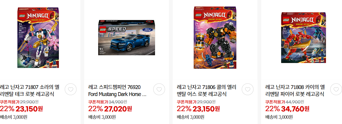 할인 품목 : 닌자고, 자동차, 클래식 등